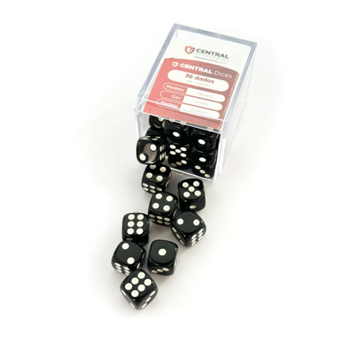Central Dice – 36 d6 de 12mm: Opaco Preto e Branco
