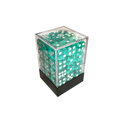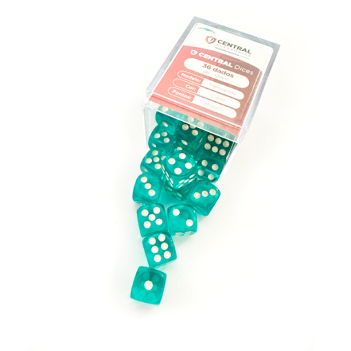 Central Dice – 36 d6 de 12mm: Translúcido Ciano e Branco