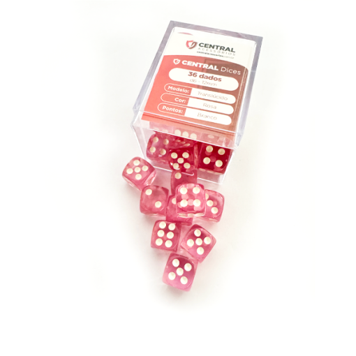 Central Dice – 36 d6 de 12mm: Translúcido Rosa e Branco