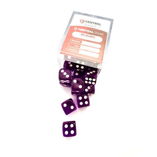 Central Dice – 36 d6 de 12mm: Translúcido Roxo Escuro e Branco